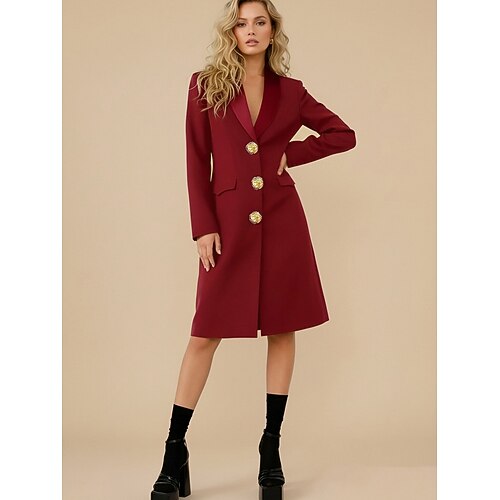 Per donna Abito da smoking Linea ad A Cocktail Affari Ufficio Tessuto Elasticizzato Elegante Formale Manica Lunga Lunghezza al ginocchio Dentellato Monopetto