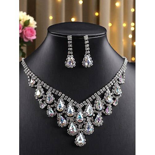 set di collana e orecchini a goccia viola placcati in argento da donna: eleganti gioielli da sposa in cristallo per matrimoni, balli di fine anno e feste formali