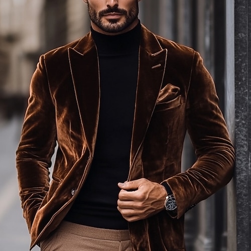 Per uomo Blazer di velluto Collare di chiusura Vintage Moda Casual Tinta unita Blazer Marrone Vestibilità su misura Monopetto Due Bottoni