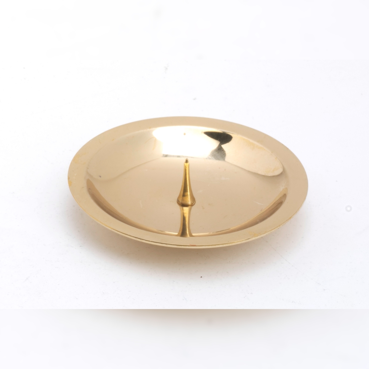 Kerzenteller mit Dorn, Dekoteller Messing poliert gold für Kerzen Ø 8 cm