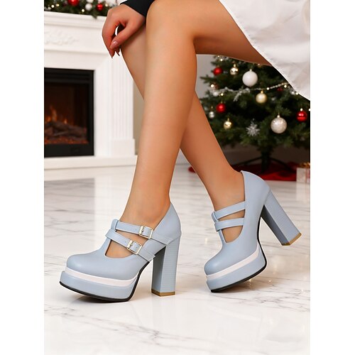 décolleté Mary Jane rosse da donna con tacco grosso – stile retrò anni '80 con plateau, perfette per feste di Natale, eventi festivi e riunioni festive