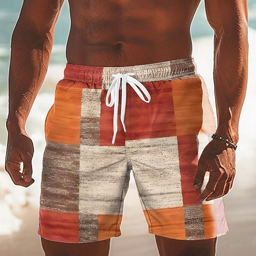 Per uomo Geometrico Blocco di colori Patchwork Costumi da bagno Pantaloncini da mare Pantaloncini da Surf Misura del girovita medio Casual All'aperto Vacanza Abbigliamento Quotidiano Tasche Laterali