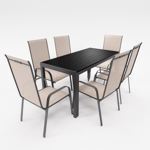 Lex Gartenmöbel Set Alu Tisch 7-tlg. 6x Stapelsessel Essgruppe Sitzgruppe Gartenset beige : Beige