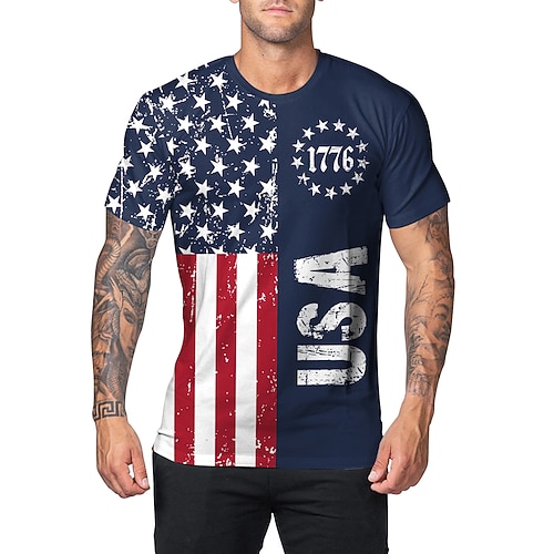 Americano 250 Patriotico Bandiera USA 250 anni 1776 Carnevale T-shirt Innovativo Divertente Adulti Per uomo Semiquincentenario Giorno dell'Indipendenza / 4 Luglio 4 Luglio Casuale Feste Costume di