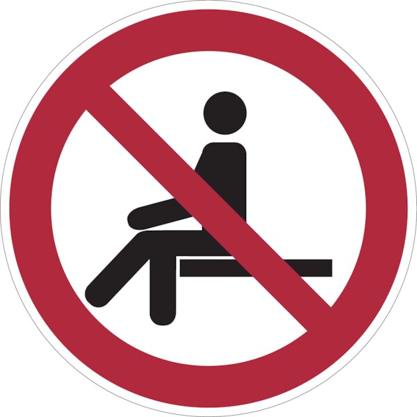 Verbotsschild, Sitzen verboten P018 - ASR A1.3 (DIN EN ISO 7010) - 100 mm Folie selbstklebend