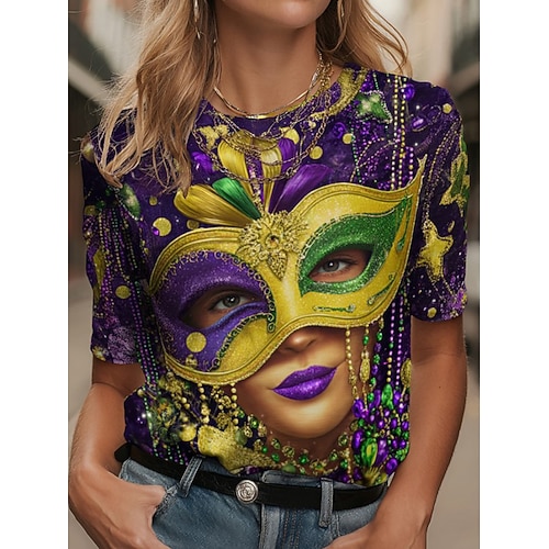Carnevale Per donna Maglietta Grafico Casual Manica Corta Girocollo Top Regolari Quotidiano Stampato Verde Estate