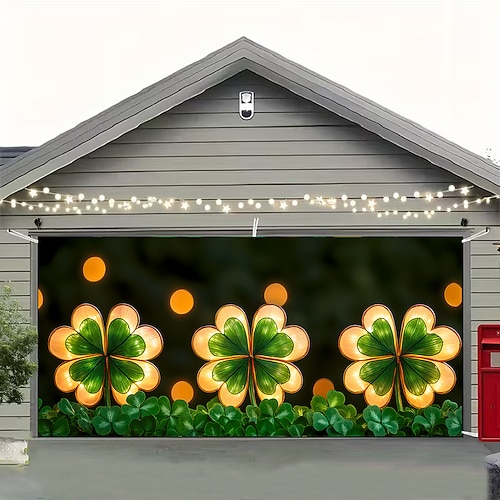 Festa di San Patrizio arazzo Copertura per porta del garage Grande appeso Elfo Carino 3D Da serata All'aperto Vacanze Sfondi di ripresa Yarda Arredamento per la casa
