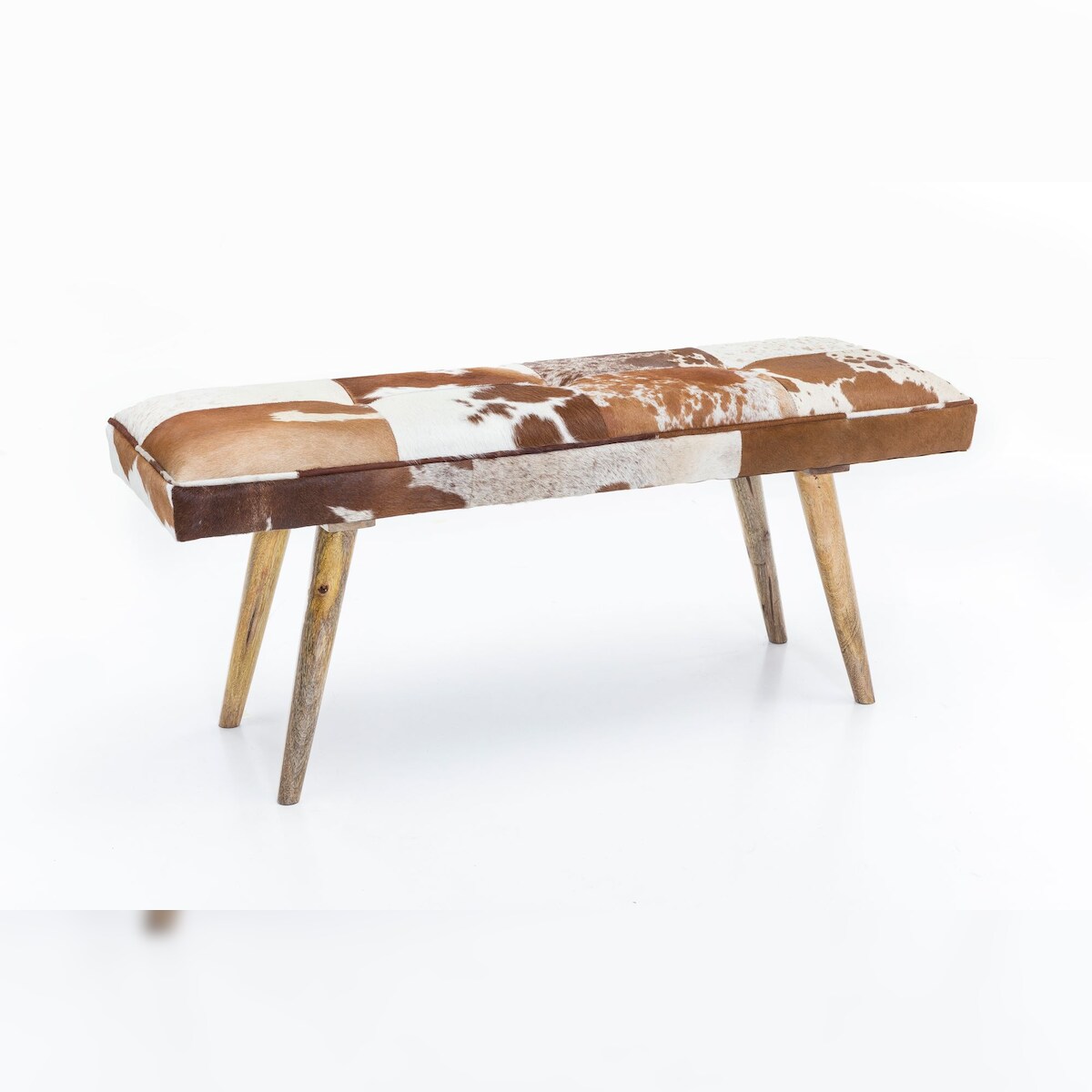 KADIMA DESIGN Sitzbank Ziegenfell / Massivholz Bank 120 x 40 x 52 cm, Polsterbank Flur Esszimmer Braun, Kleine Bettbank Fell, Dielenmöbel