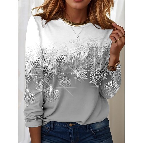 Felpa da Donna Invernale Stampa Fiocco di Neve Blu Gradiente Casual Confortevole Pullover Vestibilità Regolare Stagione delle Feste Top Confortevole Preautunno