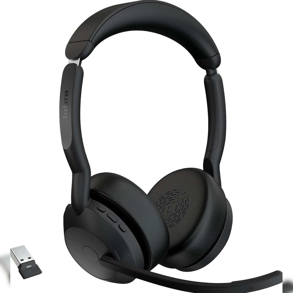 Jabra evolve2 65 ms stereo headset on-ear bluetooth wireless usb-a noise