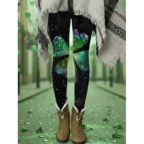 Leggings da donna per San Patrizio pantaloni basic casual a lunghezza intera a vita alta grafica trifoglio comfort morbido confortevole elasticizzati per le vacanze all'aperto nero verde color cenere
