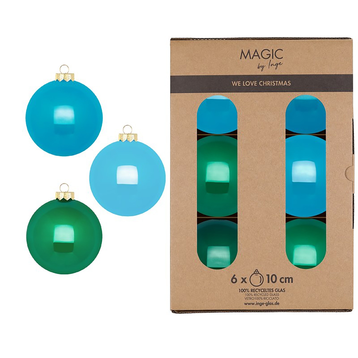 Inges Magic & Goodz 6 Weihnachtskugeln Glas 10cm matt & glänzend Christbaumkugeln Weihnachtsbaumkugeln Groß Christbaumschmuck Weihnachtsbaumschmuck Deko Grün Blau Mix