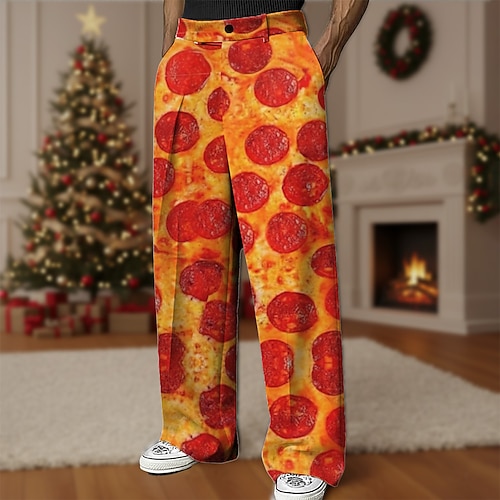 Per uomo Illusione ottica Alimenti Pizza Pantaloni Pantaloni Eleganti Pantaloni da Abito Misura del girovita medio Divertente All'aperto Casuale Ferie Pantaloni eleganti con vestibilità comoda e