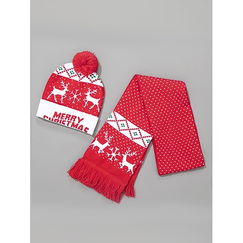 Set di cappello e sciarpa natalizi da donna in maglia, motivo renna, molteplici fantasie, comodo e festoso per feste e abbigliamento invernale