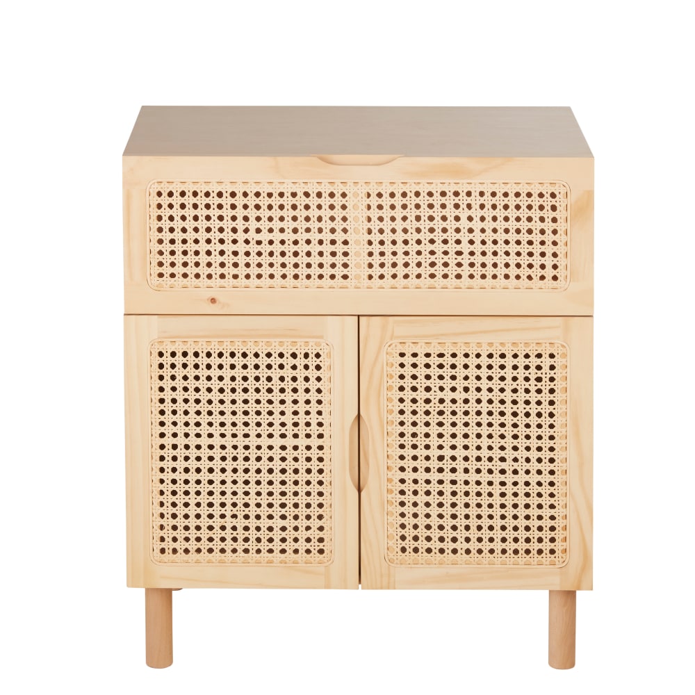 Petit meuble de rangement 2 portes 1 tiroir cannage en pin