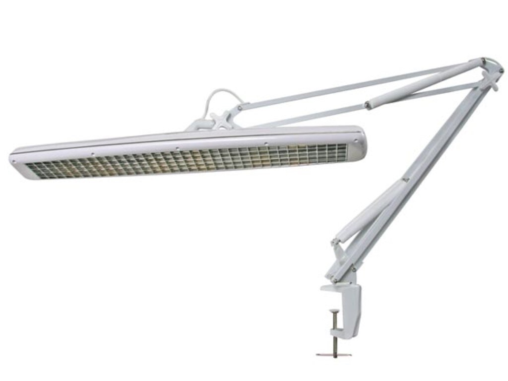 Velleman Verstellbare Schreibtischlampe mit Klemmbefestigung, Schwenkarm, Ein-/Ausschalter, 105 cm lang, 60 cm breit, 3x T5 14 W, 2700 Lumen, 6500 K, weiß.