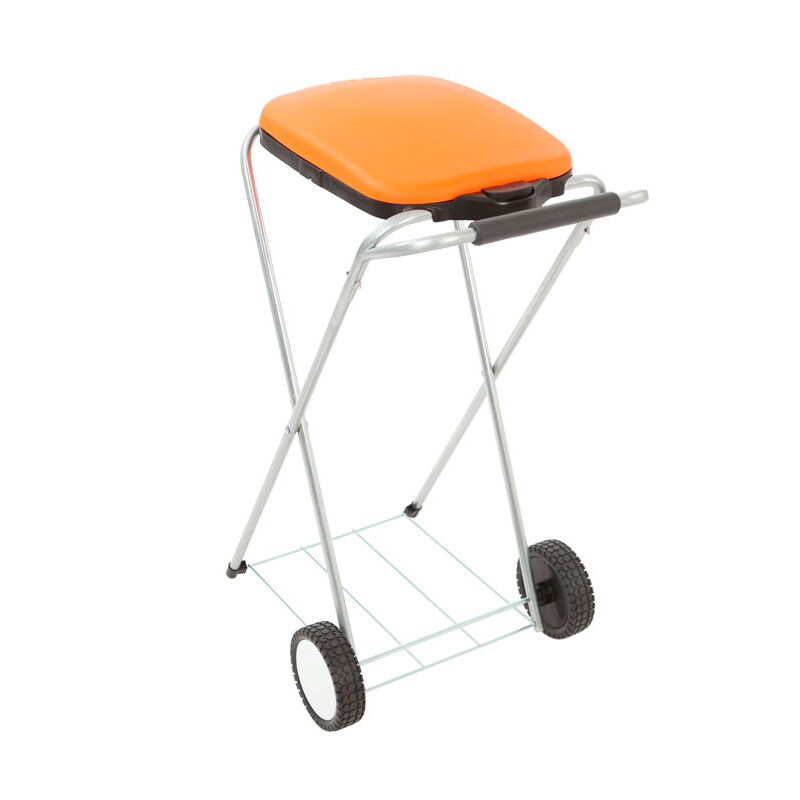 PROREGAL Klassischer Abfallsackständer mit Deckel und Rollen | HxBxT 83x44x56cm | Verzinkte Rohre | Orange