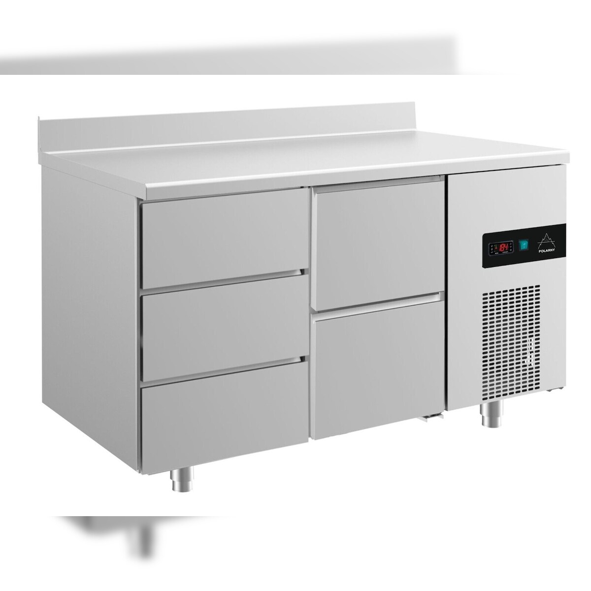 A&S polarny Gastro Edelstahl Kühltisch Umluft 3 links /2 Schubladen rechts Aufkantung, 1400x700x850mm -2/+8°C 281l
