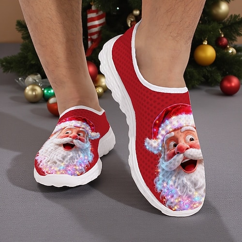 Sneakers slip-on da uomo con stampa di Babbo Natale, scarpe casual leggere e traspiranti per feste, abiti festivi e regali invernali