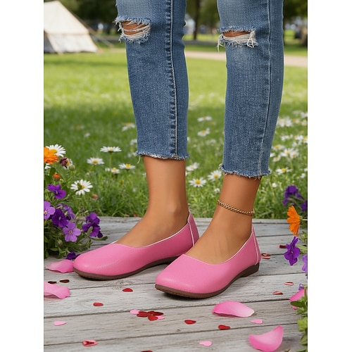 ballerine larghe da donna rosa con suola flessibile, slip-on, per le uscite primaverili ed estive e per l'uso quotidiano