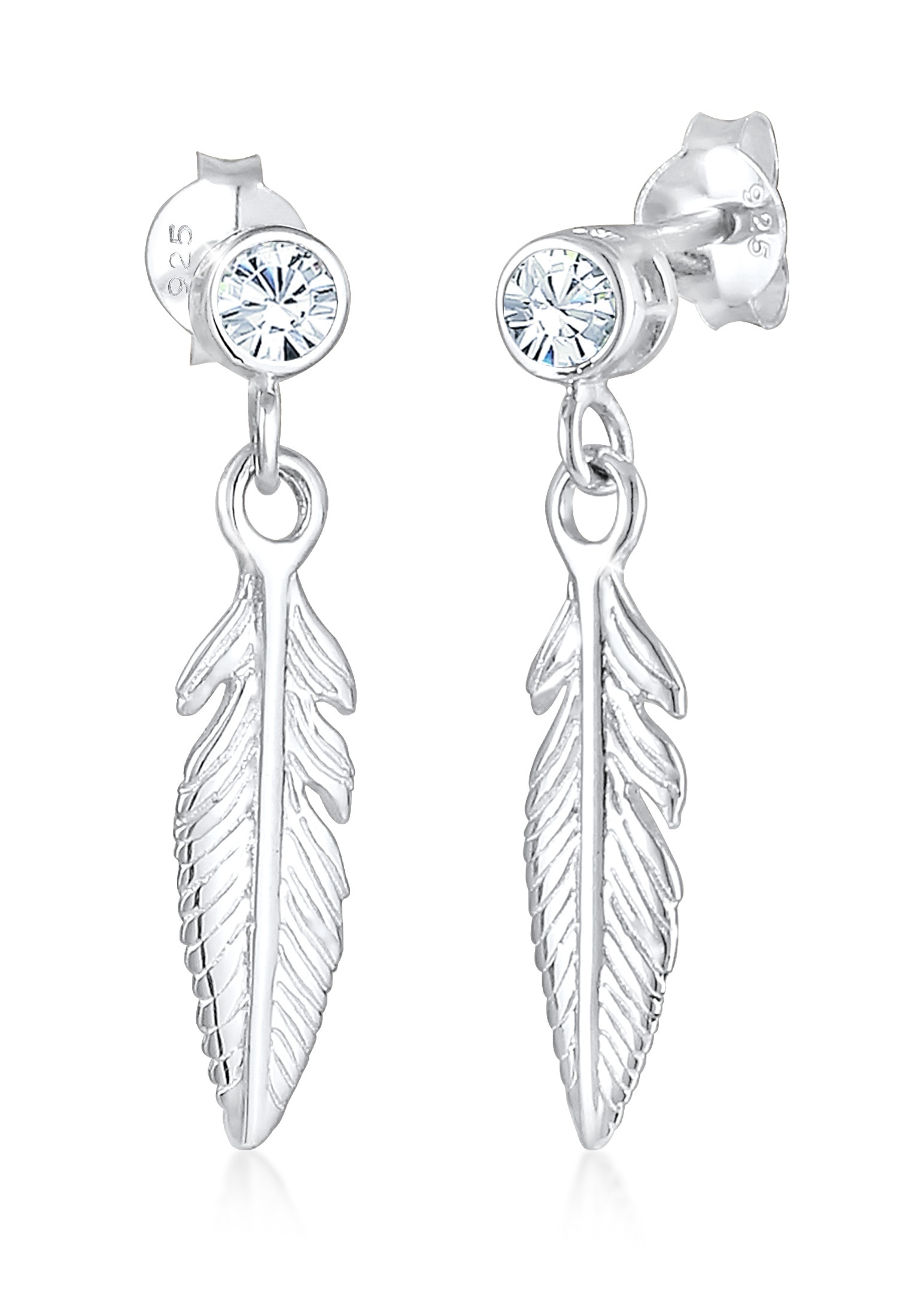 Paar Ohrhänger ELLI "Ohrhänger Feder mit Kristalle Silber", weiß (weiß, weiß), Ohrringe, Damen, mit Steinen, Silber 925 (Sterlingsilber)
