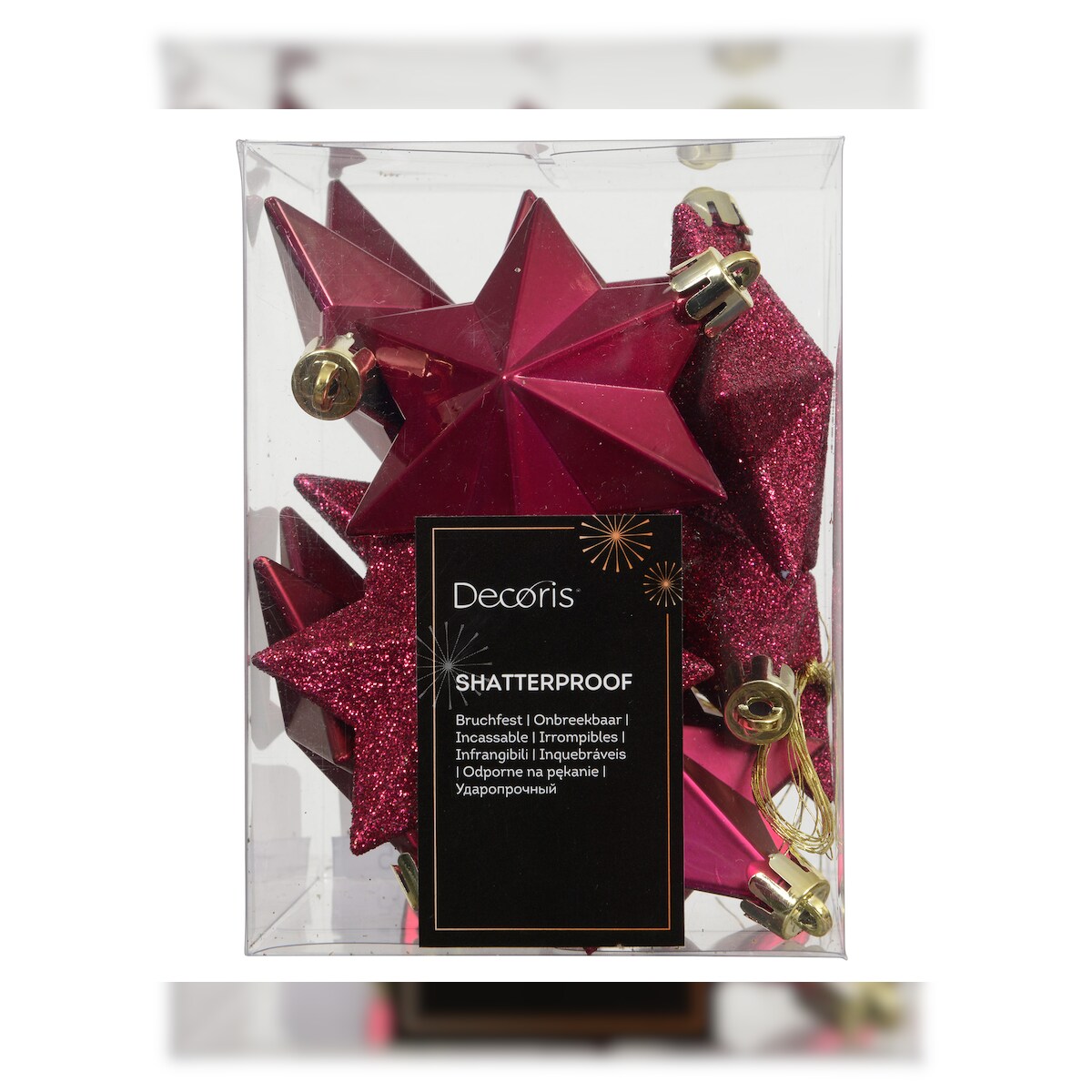 12 Sterne 7cm Christbaumschmuck Kunststoff - bruchsichere Weihnachtskugeln Weihnachtsbaumschmuck Christbaumkugeln Festlich Rosa