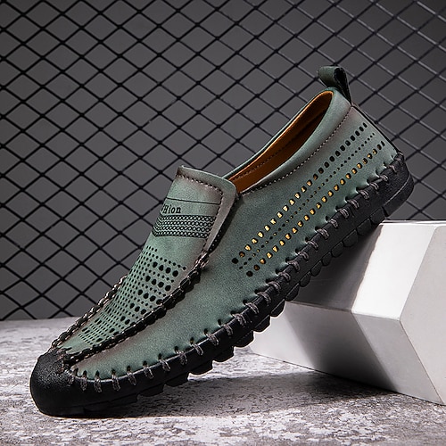scarpe casual slip-on da uomo in similpelle verde, comode e traspiranti, ideali per le vacanze al mare e le rilassanti attività estive