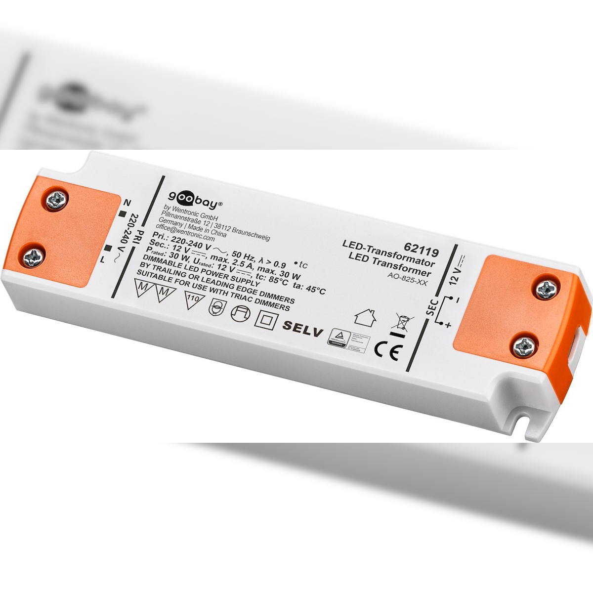 Goobay 62119 LED-Trafo 12 V (DC)/30 W, 30 W - dimmbar, 12 V DC für LEDs bis 30 W Gesamtlast