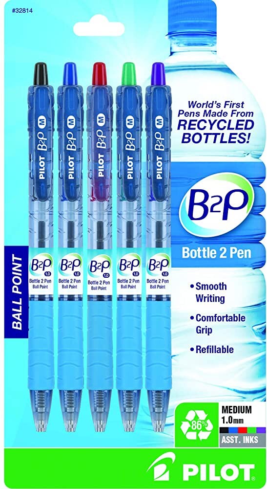 Pilot B2P Ecoball Kugelschreiber Flow Pack - Mittel - Farbbereich Schwarz/Blau/Rot/Grün - 4 Stück