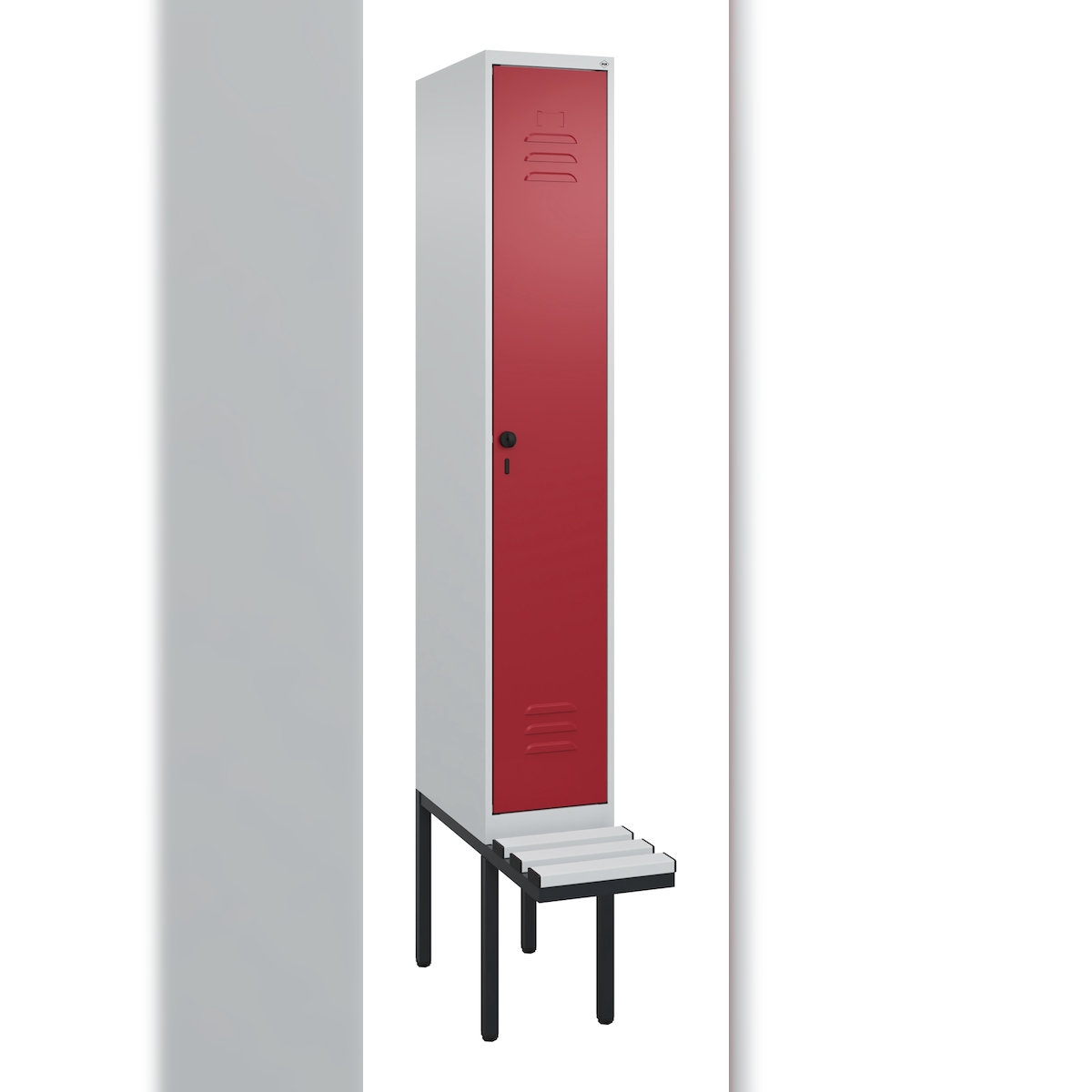 C+P Spind Classic PLUS, Kunststoff schwebende Sitzbank, 1 Abteil, HxBxT 212x30x82cm, Sicherheitsdrehriegel, Hellgrau/Rubinrot von PROREGAL