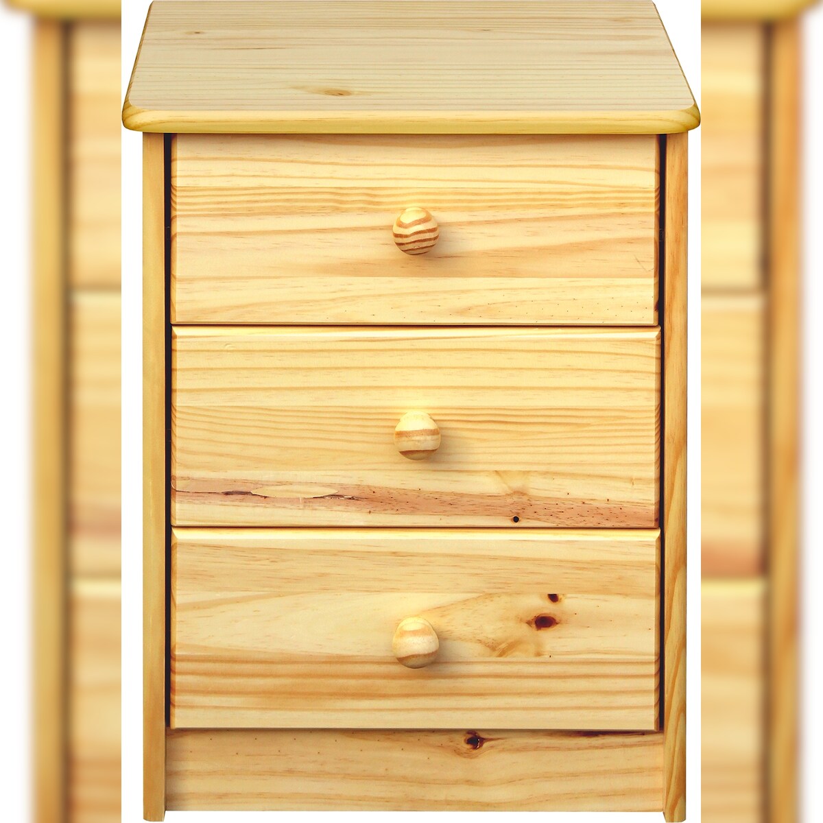Möbilia Kommode | 3 Schubladen | Kiefer-Holz massiv | B 43 x T 35 x H 57 cm | natur-lackiert | 19020001 | Serie KOMMODE