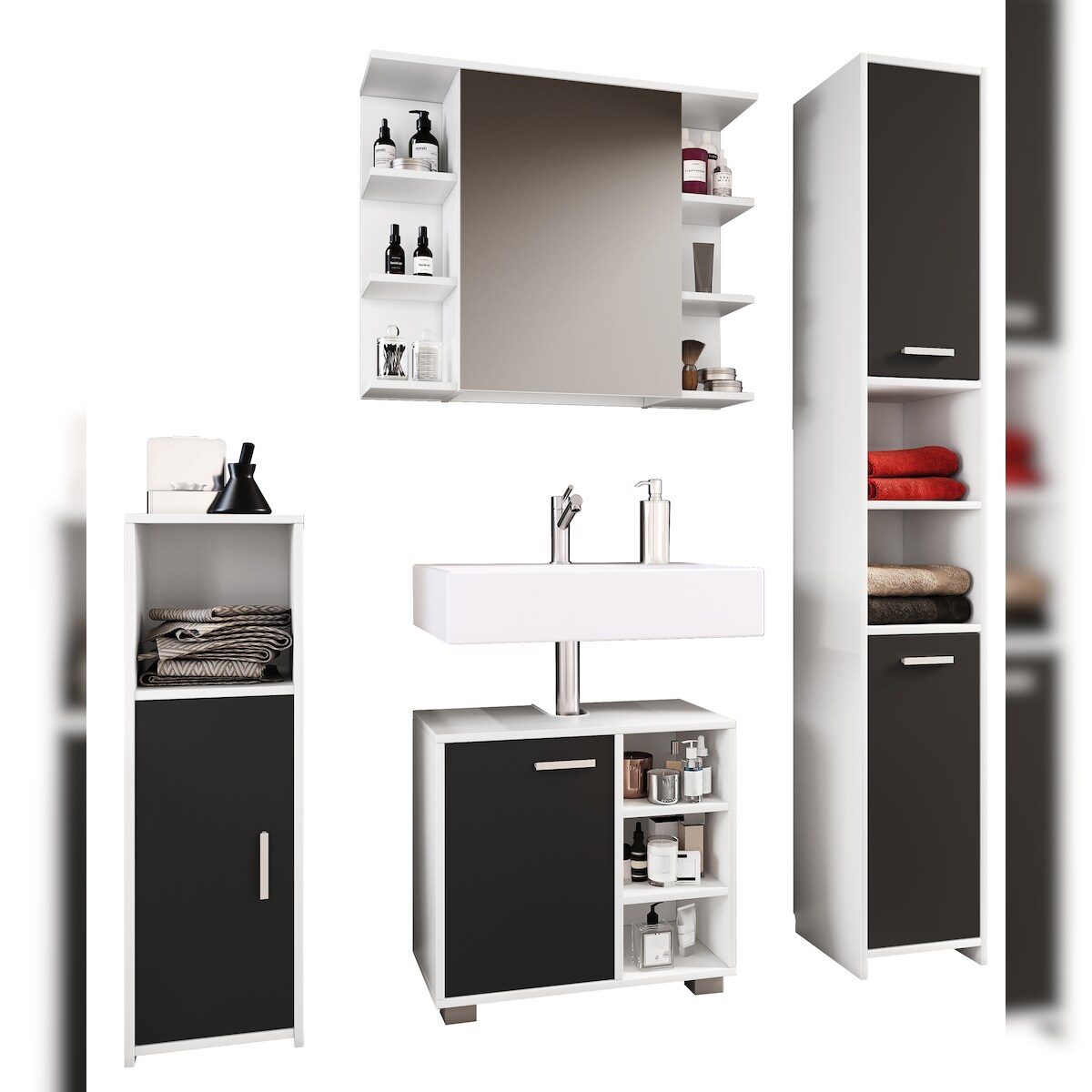 VCM Badmöbel Sets Zalo Schwarz H. 180 x B. 140 x T. 30 cm