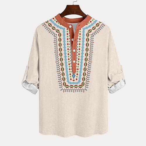 Per uomo Etnico Camicia Camicia con bottoni Camicia Henley Manica lunga Vintage Informale Tribale Da mare Giornaliero Spiaggia Estate Inverno Primavera Autunno Colletto alla coreana Abbottonare
