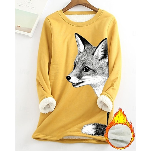 Per donna Felpa Pullover Animale Moda Essenziale Casual Manica Lunga Girocollo Top lunghi Streetwear Abbigliamento Quotidiano Casuale Stampato Foderato in pile Nero Giallo Rosa Rosa scuro Blu Autunno