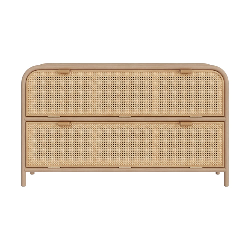 Commode en rotin et bois massif, 2 portes abattantes