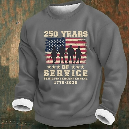 Felpa da uomo con grafica, bandiera americana, 250° anniversario, sportiva, moda, quotidiano, classica, girocollo, per attività all'aperto, per vacanze, nera, bianca, rossa, grigio chiaro, stampa,