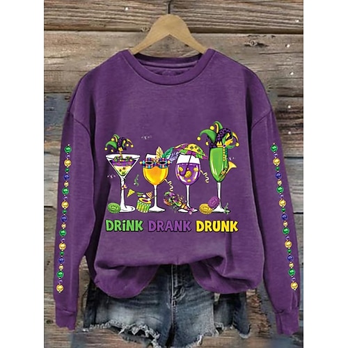 T-Shirt da donna per il giorno di San Patrizio Grafica Quadrifoglio Vintage Elegante Classico Maniche Lunghe Girocollo Collo Rotondo Top Lunghi Quotidiani Stampa Nera Verde Primavera Autunno