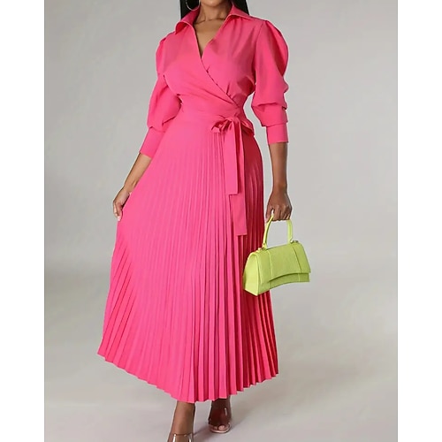 Natale Per donna Abito Midi Tubino Elegante Festa cocktail All'aperto Feste Ospite di nozze Taglia piccola Tinta unica Manica Lunga Scollo a Cascata Fucsia Marrone Verde Autunno Inverno