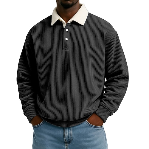 Per uomo Camicia di Velluto a Coste Polo Streetwear Casuale Bavero Manica Lunga Essenziale Moderno Blocco di colori Bottoni Primavera Autunno Vestibilità regolare Nero Blu marino Grigio chiaro