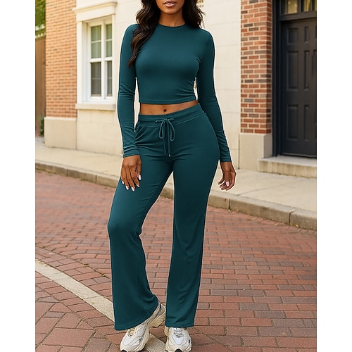 Per donna Set di tute e pullover Tuta da 2 pezzi Abiti da salotto Coulisse Tinta unita Completo Abbigliamento Autunno Rosa Chiaro Rosa Escursionismo Lavoro All'aperto Leggero Manica Lunga Sport