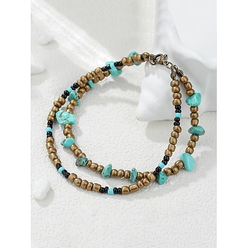 Set di cavigliere con perline turchesi da donna - cavigliera a doppio filo in stile bohémien con decorazioni in lega e pietre preziose, perfetta per la spiaggia, le feste in piscina e la moda estiva