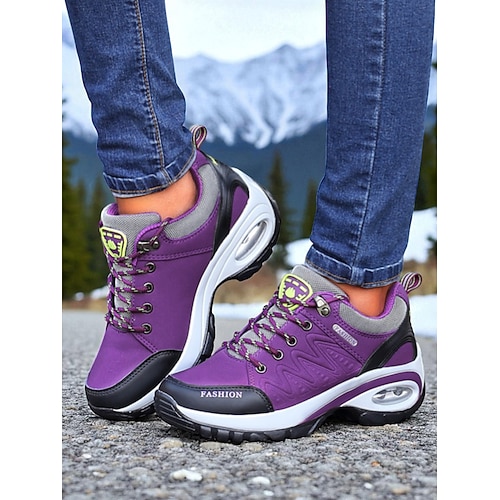 scarpe da ginnastica retrò da donna con blocchi di colore viola, scarpe sportive con lacci per camminare, viaggiare casual e per lo stile di strada di tutti i giorni