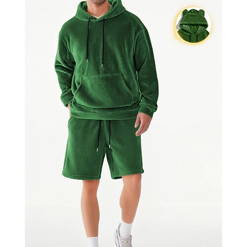 Per uomo Felpa con cappuccio Tuta Da Ginnastica Tuta da ginnastica Nero Bianco Rosso Blu Reale Arancione Con cappuccio Liscio A cordoncino 2 pezzi Tasca frontale Sportivo Giornaliero Per eventi