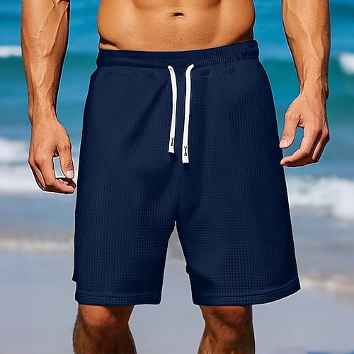 Per uomo Nido d'ape Shorts Pantaloncini Estivi Shorts da Spiaggia Coulisse Elastico in vita Tinta unica Comodità Lunghezza al ginocchio Quotidiano All'aperto Abbigliamento casual alla moda Vacanza