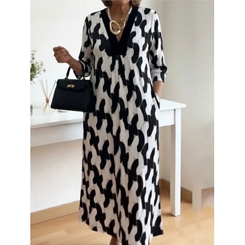Per donna Abito al ginocchio Abito a trapezio Vacanza Casual Vestibilità comoda Grafico Astratto Manica 3/4 Scollo a V Blu Nero Rosso Verde Estate Primavera Autunno