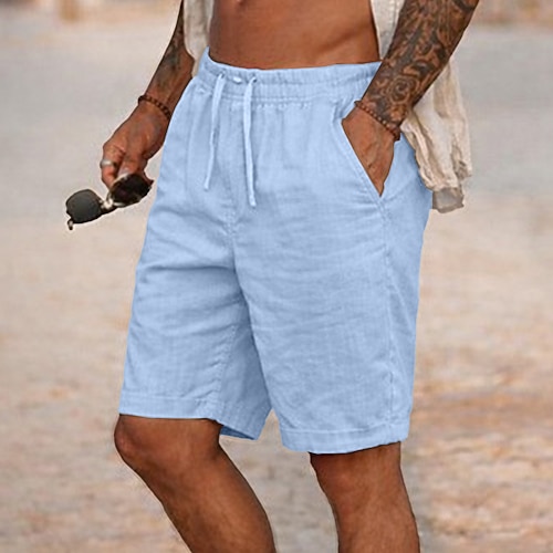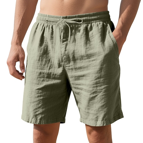 Per uomo Pantaloncini Pantaloncini di lino Pantaloncini estivi Pantaloncini da spiaggia Tasche A cordoncino Vita elastica Liscio Comfort Traspirante Lunghezza del ginocchio Informale Giornaliero Per