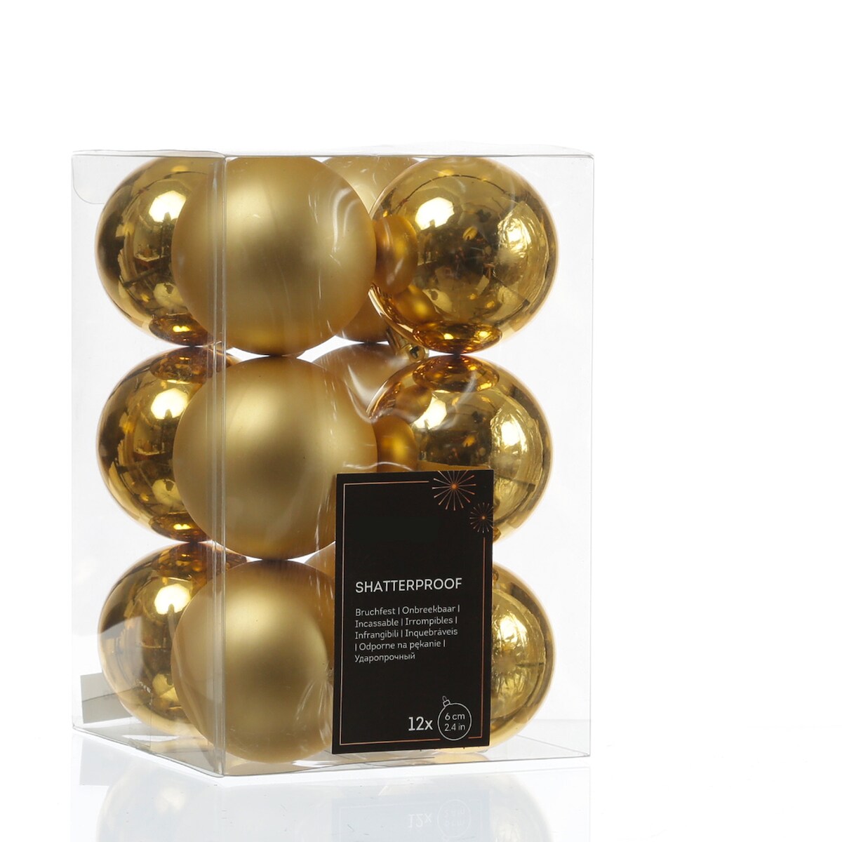 MARELIDA Christbaumkugeln Weihnachtskugeln bruchfest 6cm glänzend matt gold 12er Set