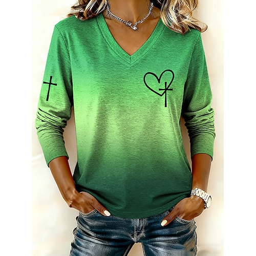 Per donna Maglietta Cuore Grafico Vintage Elegante Classico Manica Lunga Scollo a V Top Regolari Quotidiano Stampato Blu Viola Verde Primavera Autunno