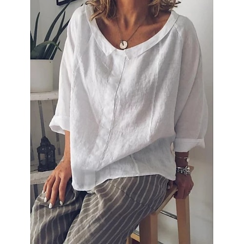 Per donna Camicia Tinta unica Elegante Essenziale Casual Manica Lunga Scollo a V Top Regolari Quotidiano Bianco Rosa Blu Grigio Estate Primavera