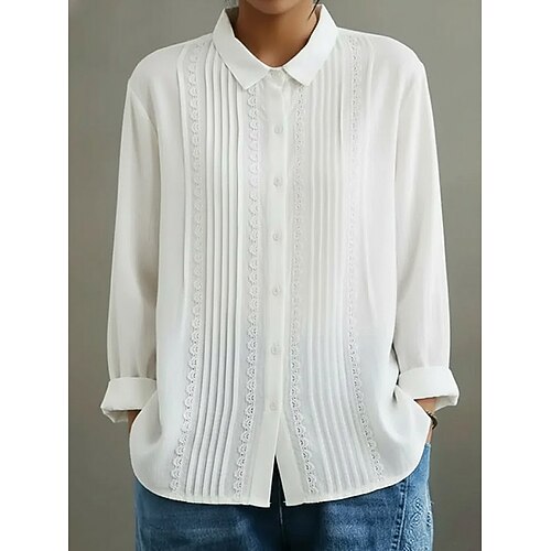 Per donna Blusa Top Eleganti Tinta unica Semplice Elegante Vintage Carino Manica Lunga Colletto a Camicia Top Regolari Quotidiano Lavoro Ferie Arricciato Patchwork Bottoni Blu Bianco Marrone Cachi